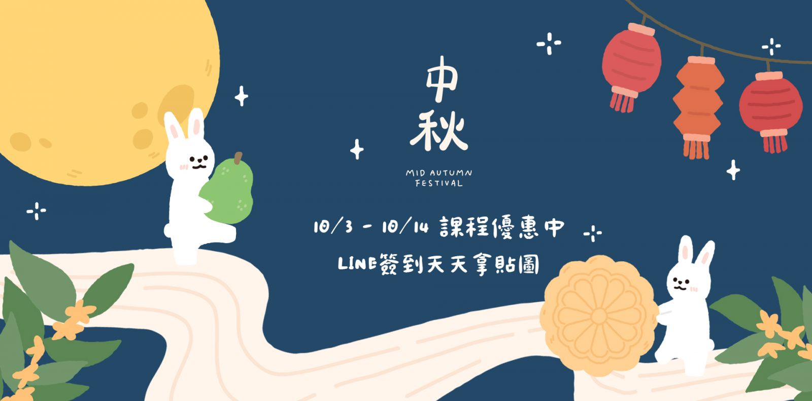 | 10/3~10/14 | 中秋佳節愉快,實用3D課程優惠中! LINE天天簽到拿實用貼圖&折扣碼!!